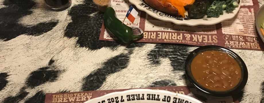 We drove over 700 miles to get our first Covid-19 vaccination shots. Neither snow nor rain nor sleet nor gloom of night stayed us from our long-sought appointments. We are grateful and we celebrated with a delicious steak dinner in a private booth at The Big Texan. Stay healthy, friends.