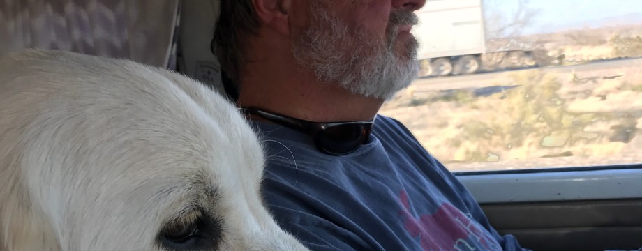 No one in Deming could work on Mike, but the VanAlert app pointed us to Fox Land Auto in El Paso, Texas – 82 miles away. Gerry from AAA re-arranged his morning plans and safely towed us to Rico’s garage. Journey was a champ riding alone in the van being towed backwards for an hour and a half, while we sat in the tow truck cab with Gerry. it was about this time last year that Mike broke down on our way to Vegas. I think he’s trying to tell us he wants to stay in Yuma.