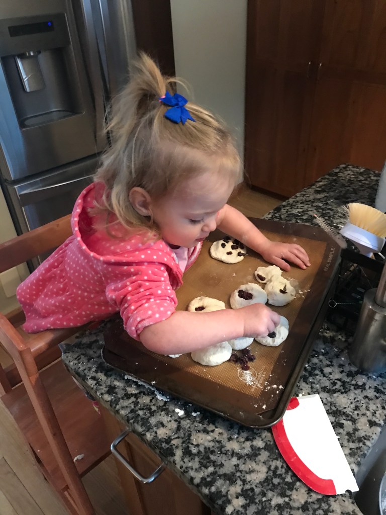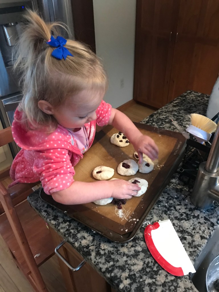 If you know Sarah, you know that cold, winter air is not a friend to her lungs. While Grampaw bundled up and ventured outside with our grandchild a few times, Nana remained indoors organizing toddler activities for our ten-day adventure in babysitting. We graduated from playdough to bread dough. We danced a billion times to “Baby Shark” and “Wheels On The Bus.” And we snuggled with lots of books!