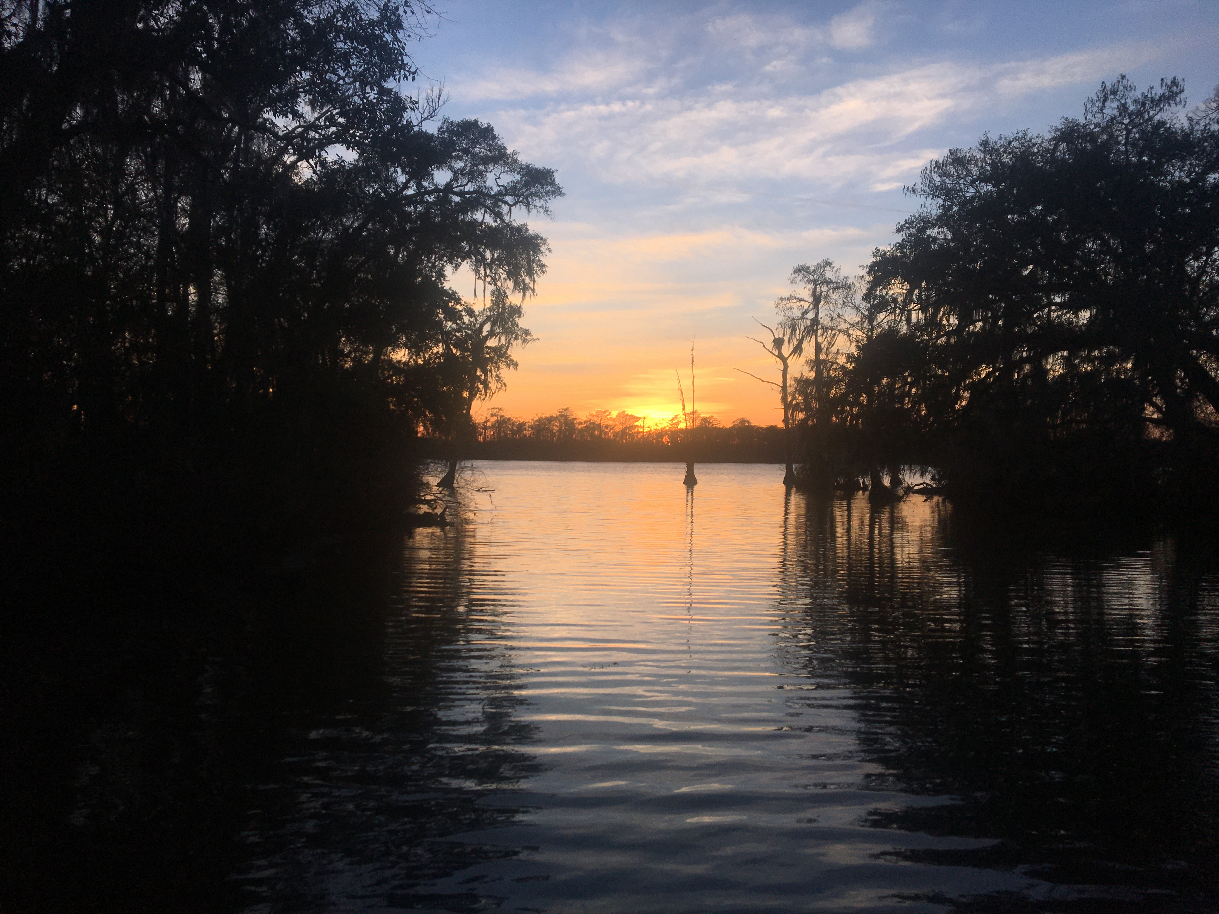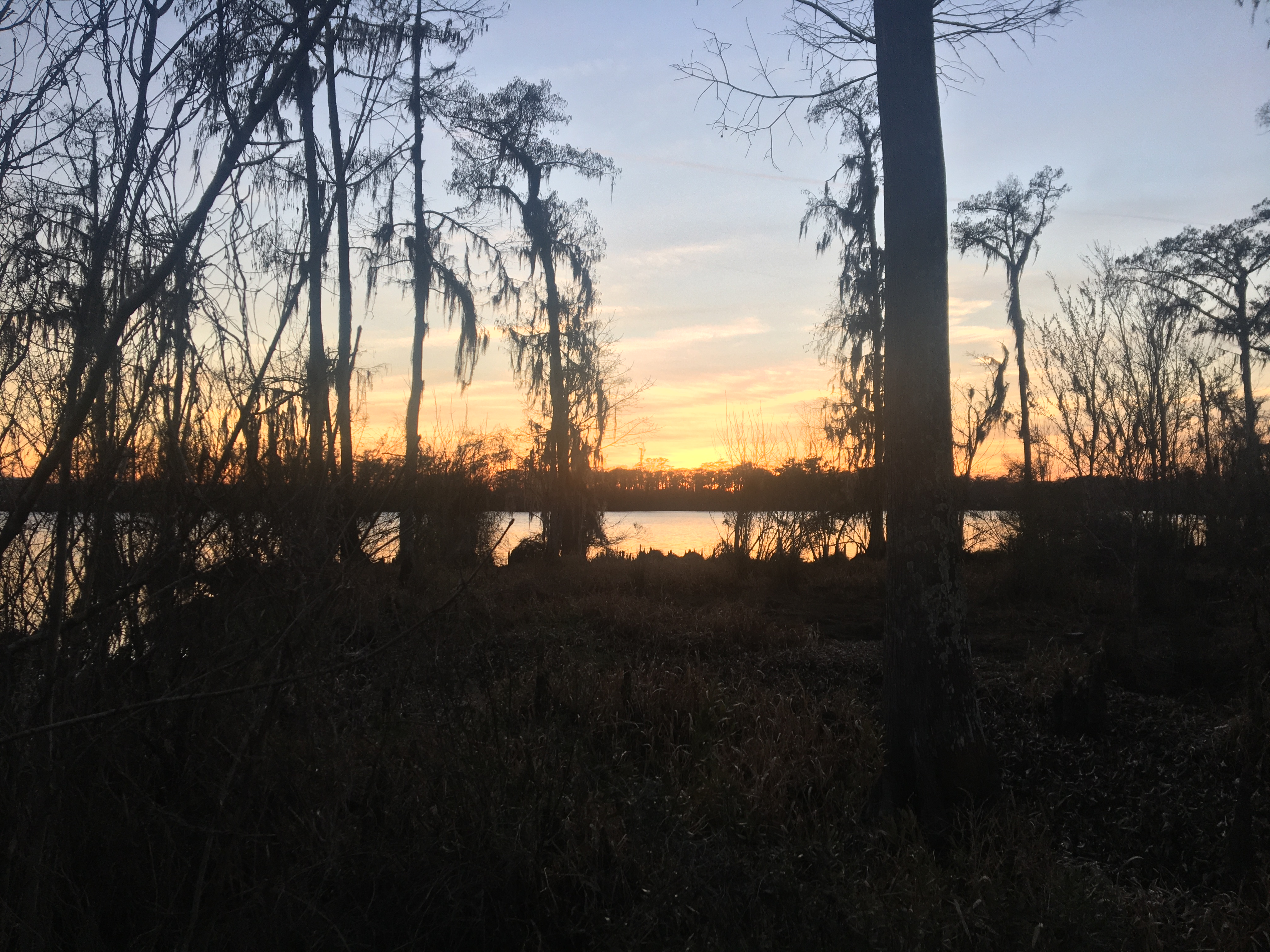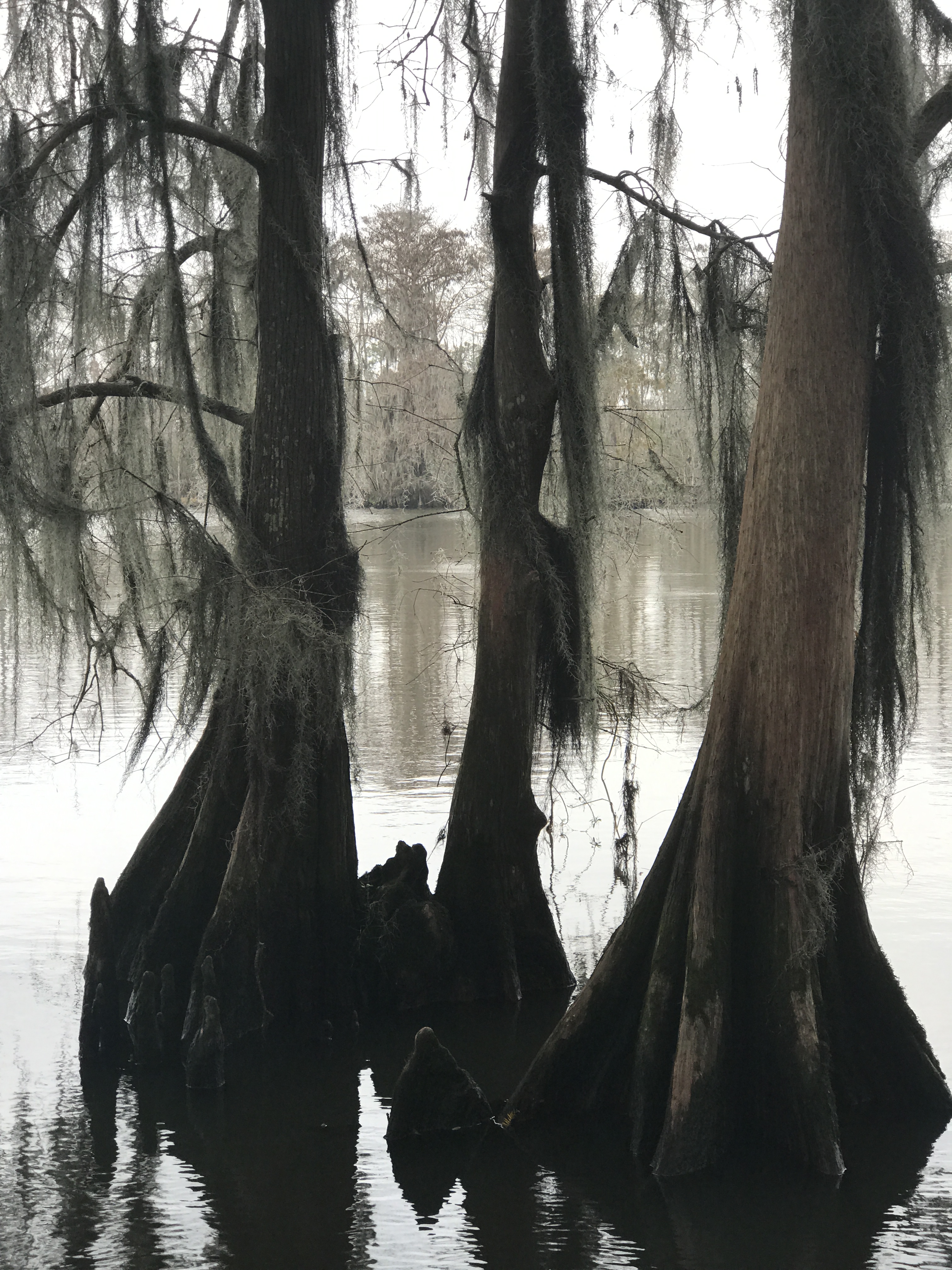 After a leisurely lunch at Chez Jacqueline’s in Breaux Bridge, we were treated to a winter boat tour of the bayou near Atchafalaya Basin Landing. To warm up when we returned to shore, we grabbed some beers on the porch of Turtle Bar, where the resident dock cat curled up with Sarah for a nap. Of course.