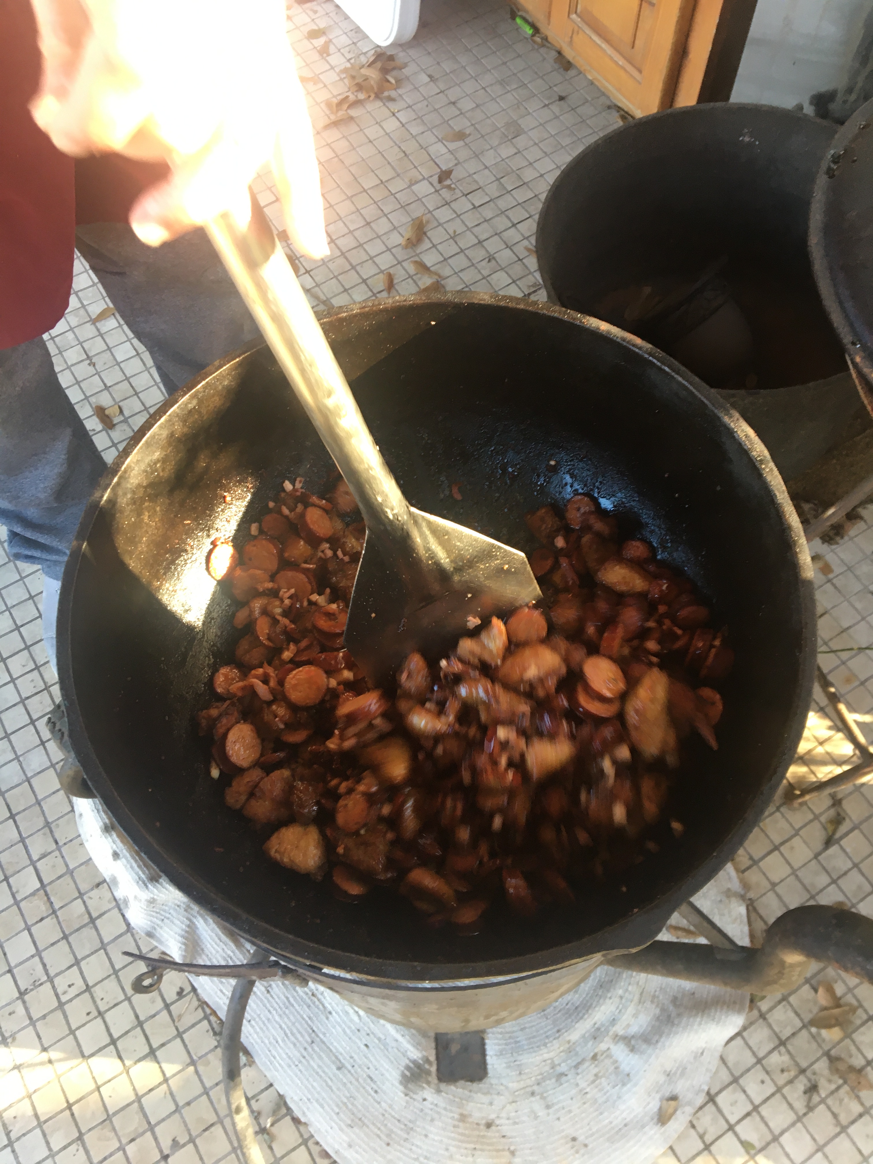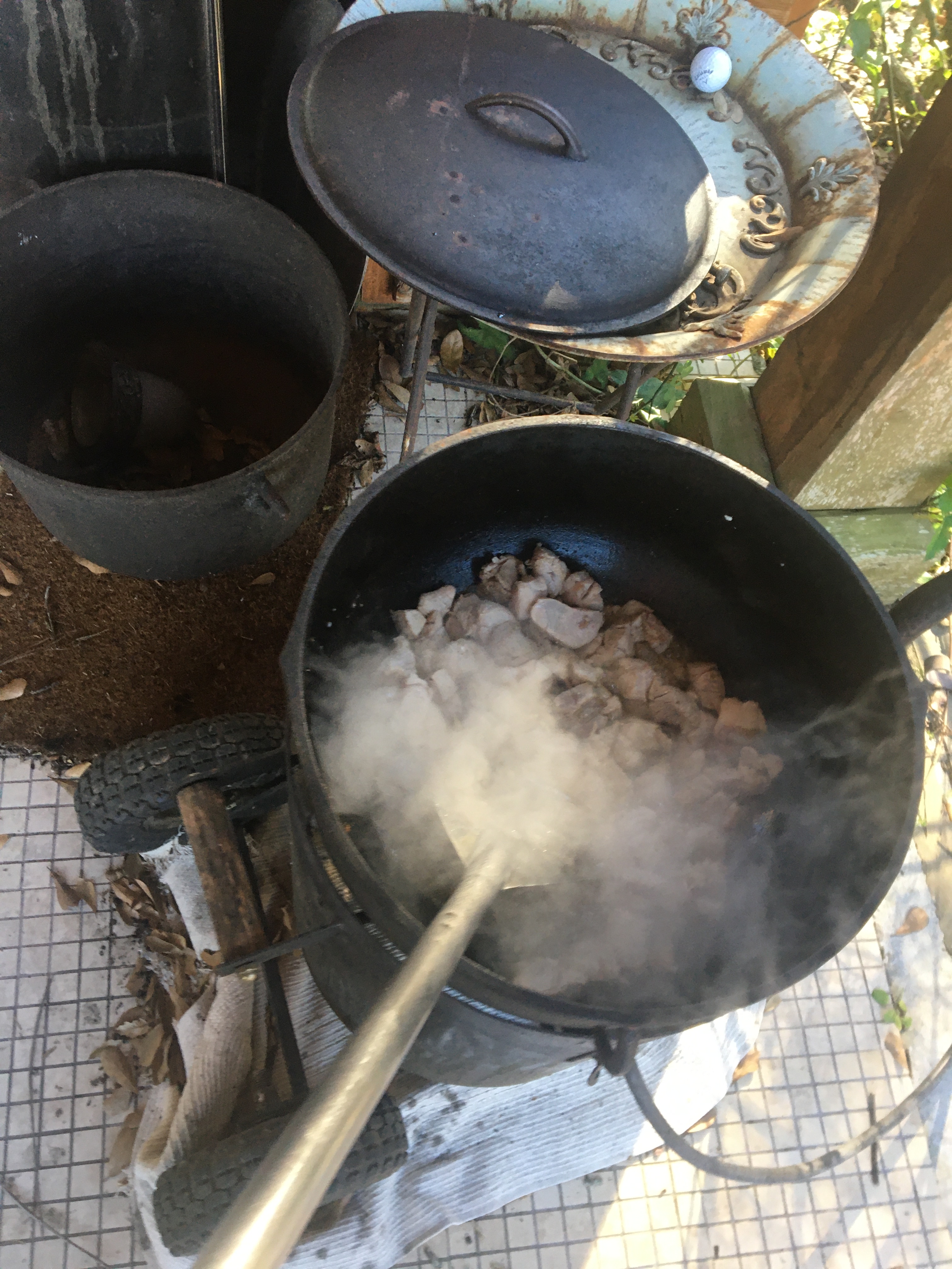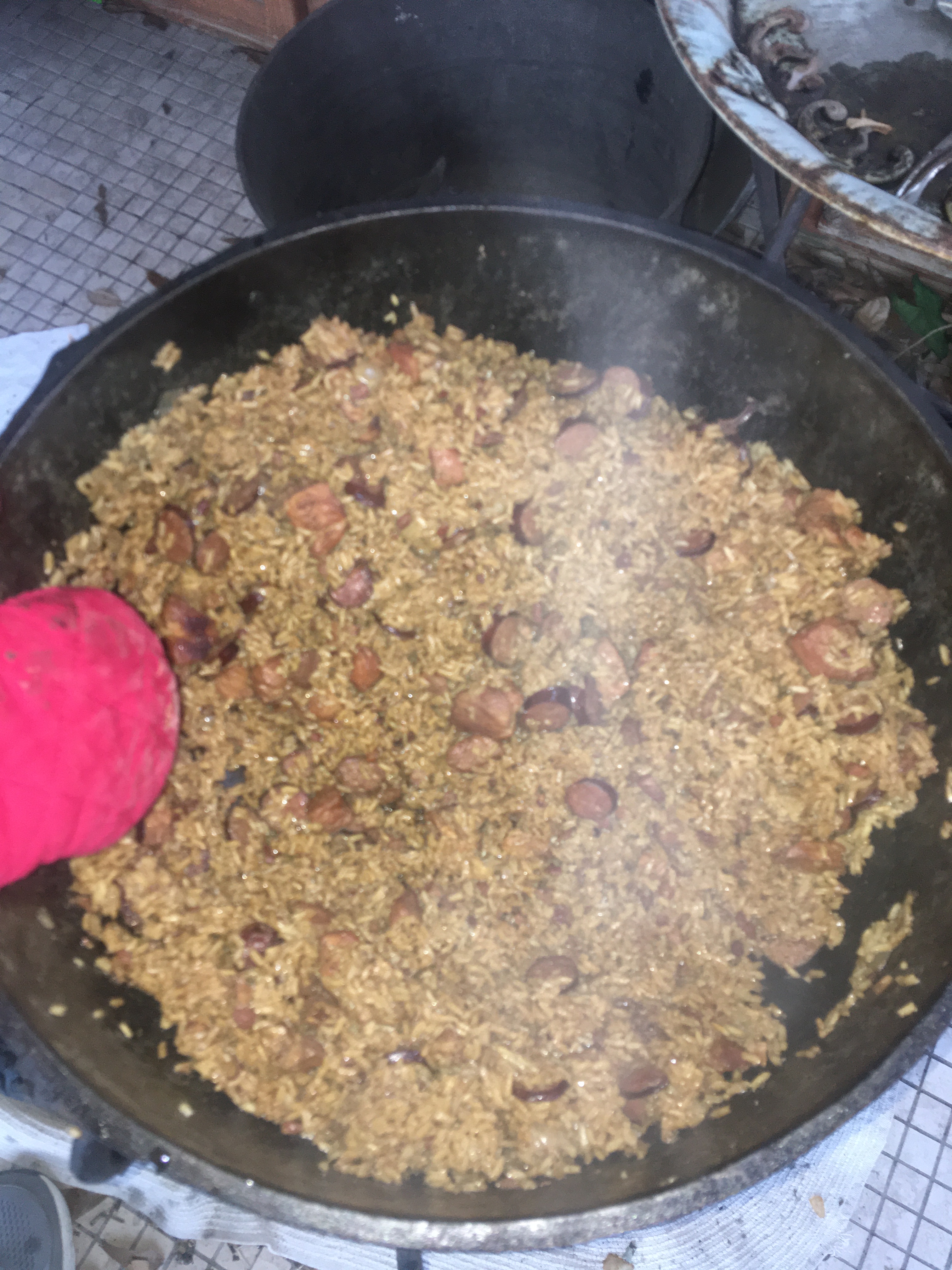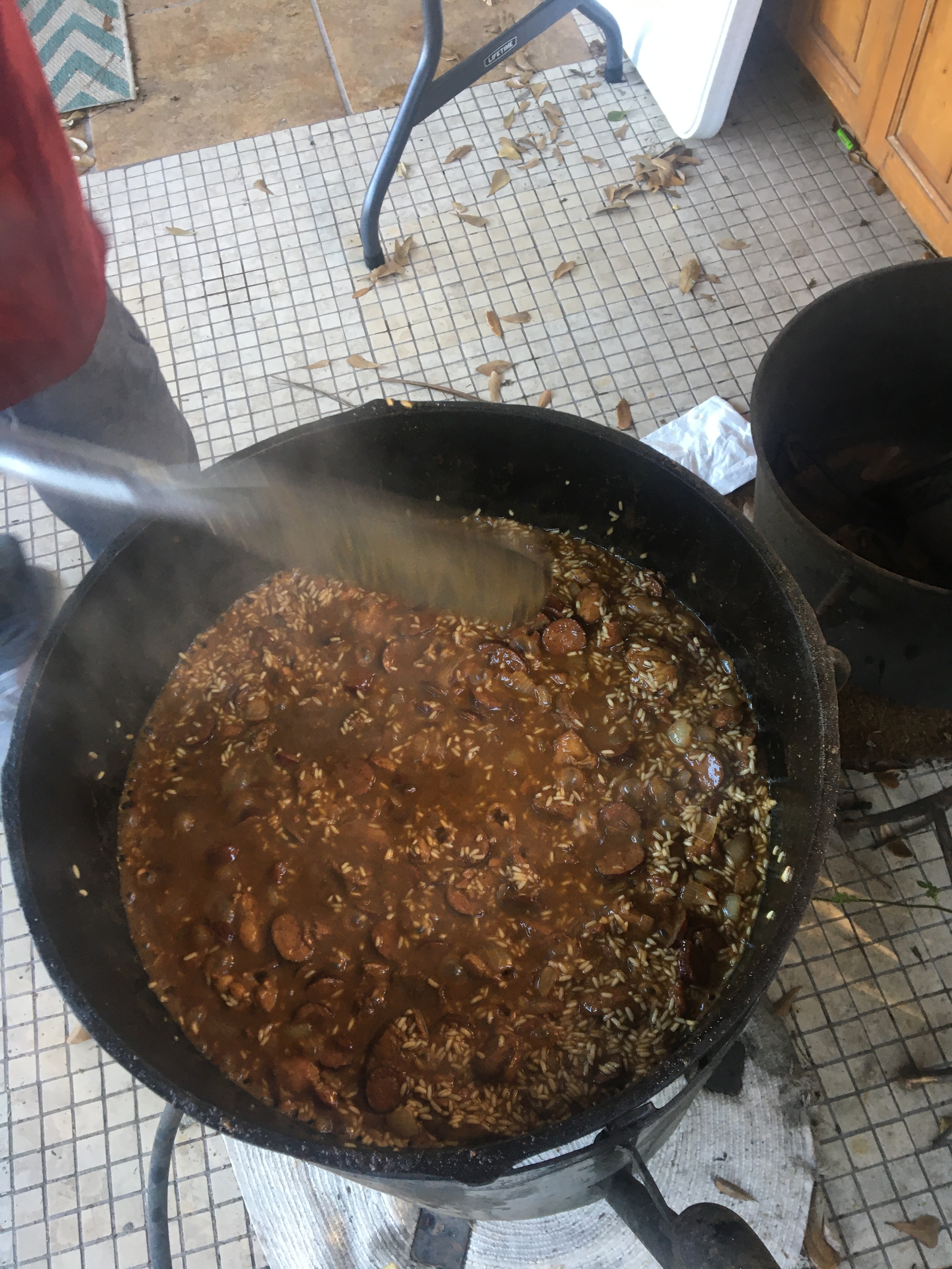 We both love Cajun food and if we had to break down somewhere, we are happy that we got to eat well all week, waiting on the RV repairs! Po’boys, oysters, crayfish, etouffee, fried and boiled shrimps, and jambalaya are just some of the samplings. Joe learned how to make jambalaya over an open flame from the master, Duane. Starting with about five pounds of meat, there was a lot of jambalaya in the giant cast-iron pot.