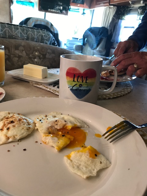 We stayed overnight at Southern Grace Lavender Farm through the Harvest Hosts program. Jason and Kari are building something very special on this farm. Sarah is a long-time user and connoisseur of all things lavender; their small-batch products are some of the best she has ever sampled, including trips to lavender farms in California, British Columbia, and France. Cornelia smells great this week as we enjoy their lavender-plumeria candle. Sarah has been wanting to try a shampoo bar to eliminate another source of plastic in our lives and her long curly locks are responding nicely to the heavenly-scented lavender-tea tree shampoo bar from Southern Grace Lavender Farm! And for two nights, we have slumbered like babies with the lavender-eucalyptus pillow mist on our curtains above our bed. With reasonable prices, environmentally responsible packaging, and absolutely gorgeous products invented and made at the farm by owners Jason and Kari, we recommend our friends check them out for online ordering. Did we mention the pastoral landscape? And the fresh eggs? And the bluebirds?