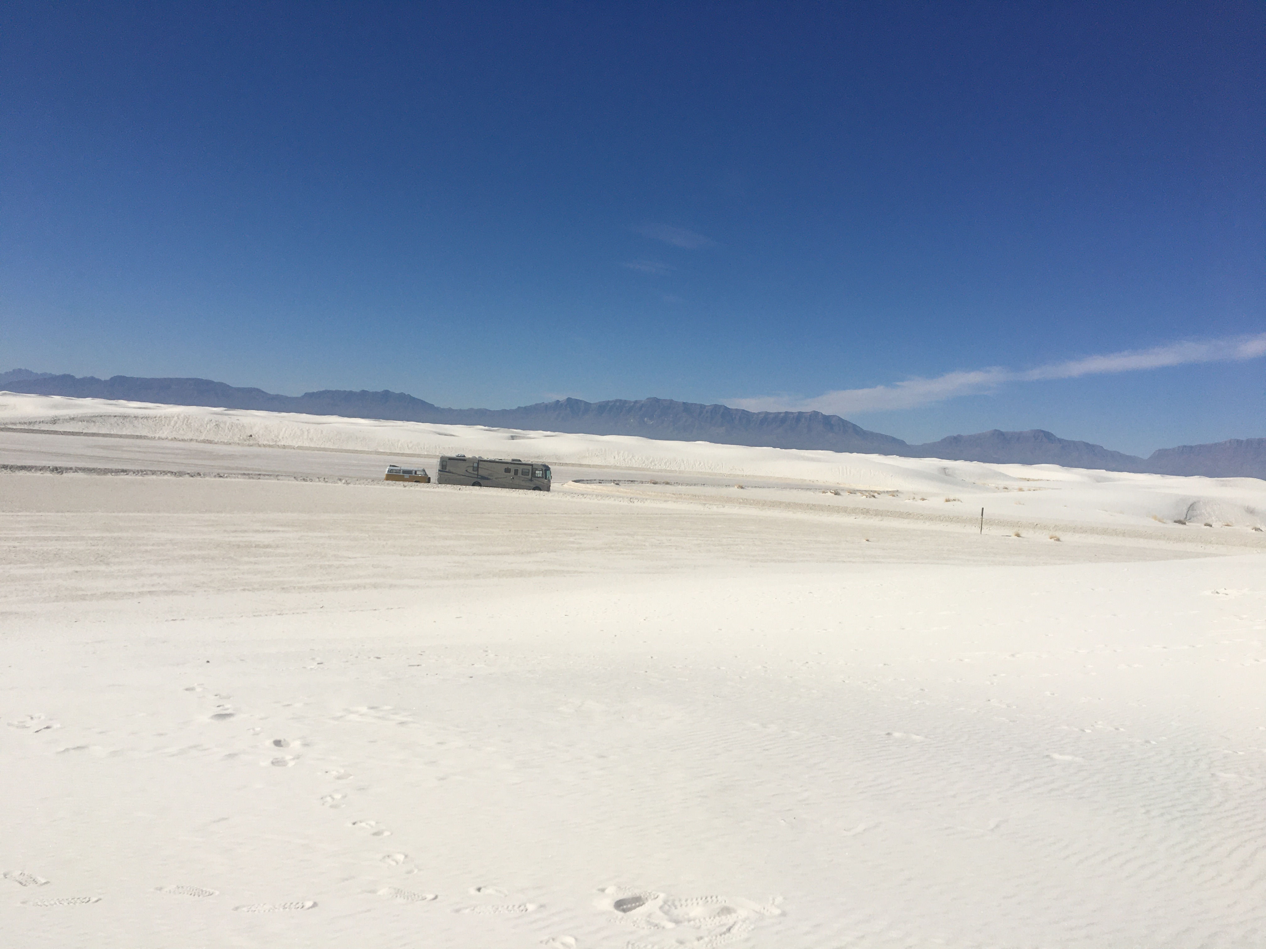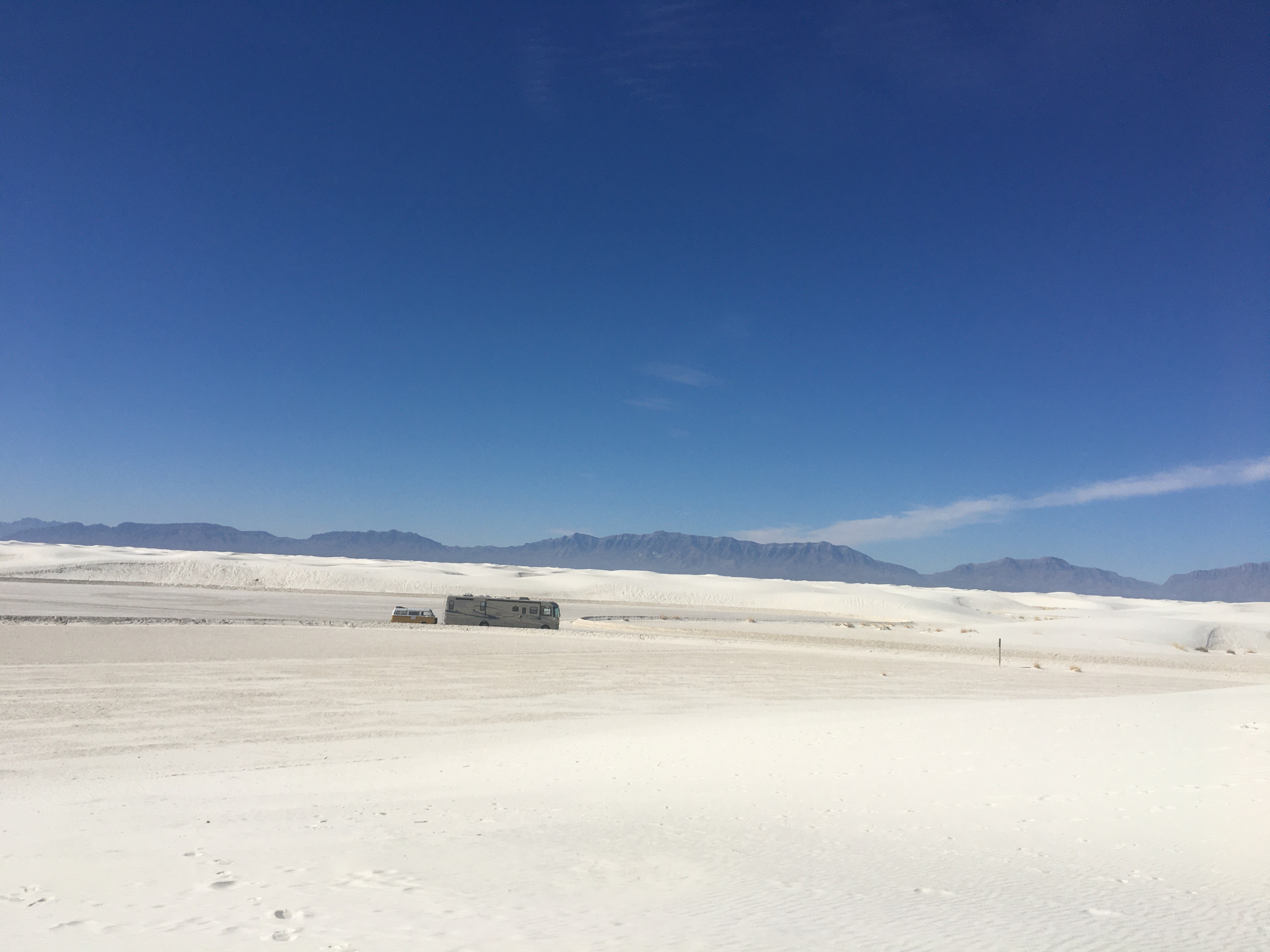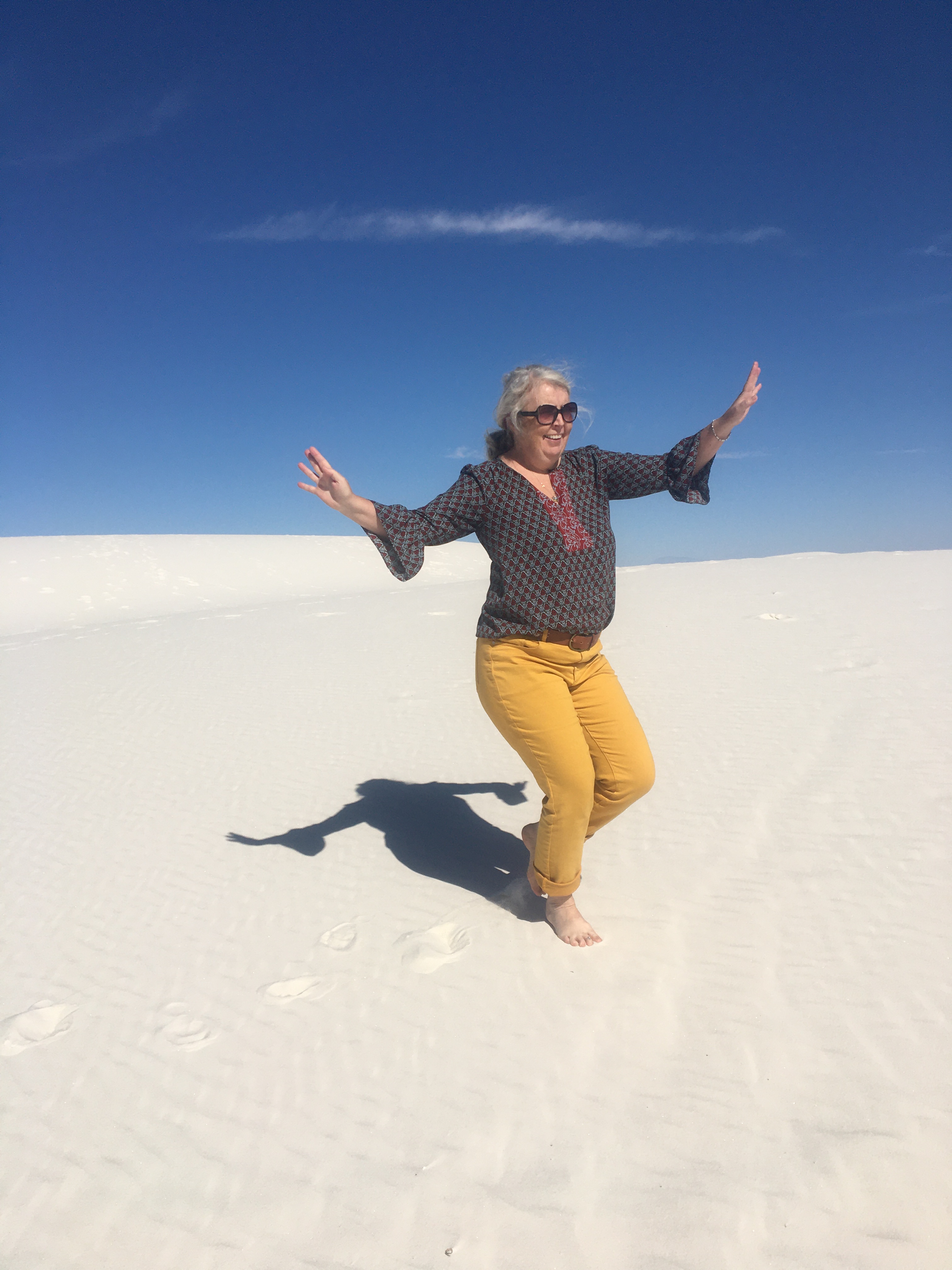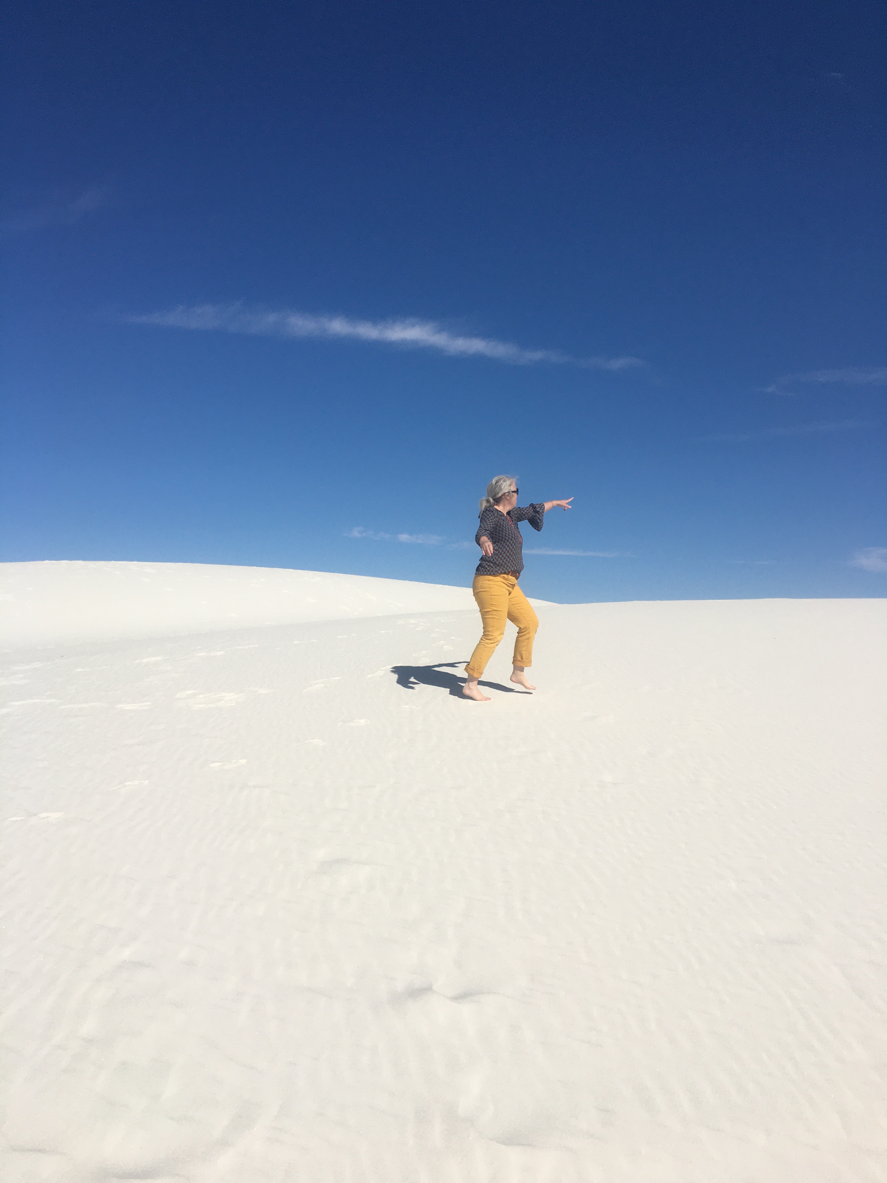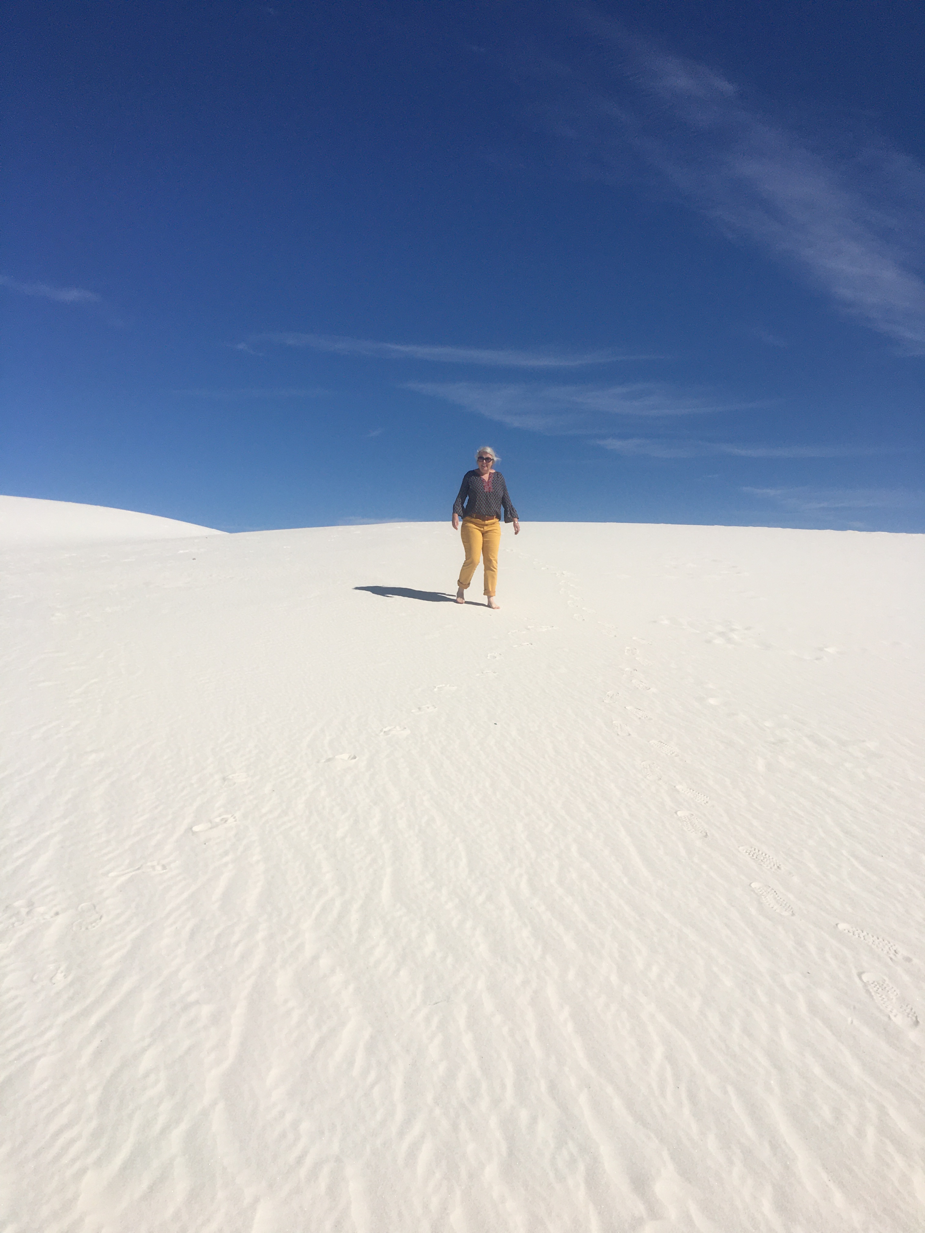The outdoor temps were gorgeous and we walked barefoot through the dunes. Again, our brains were slightly confused by the visual and sensory conflict; the dune looks like it should be hot sand, but the texture of cool, smooth gypsum feels like talc.