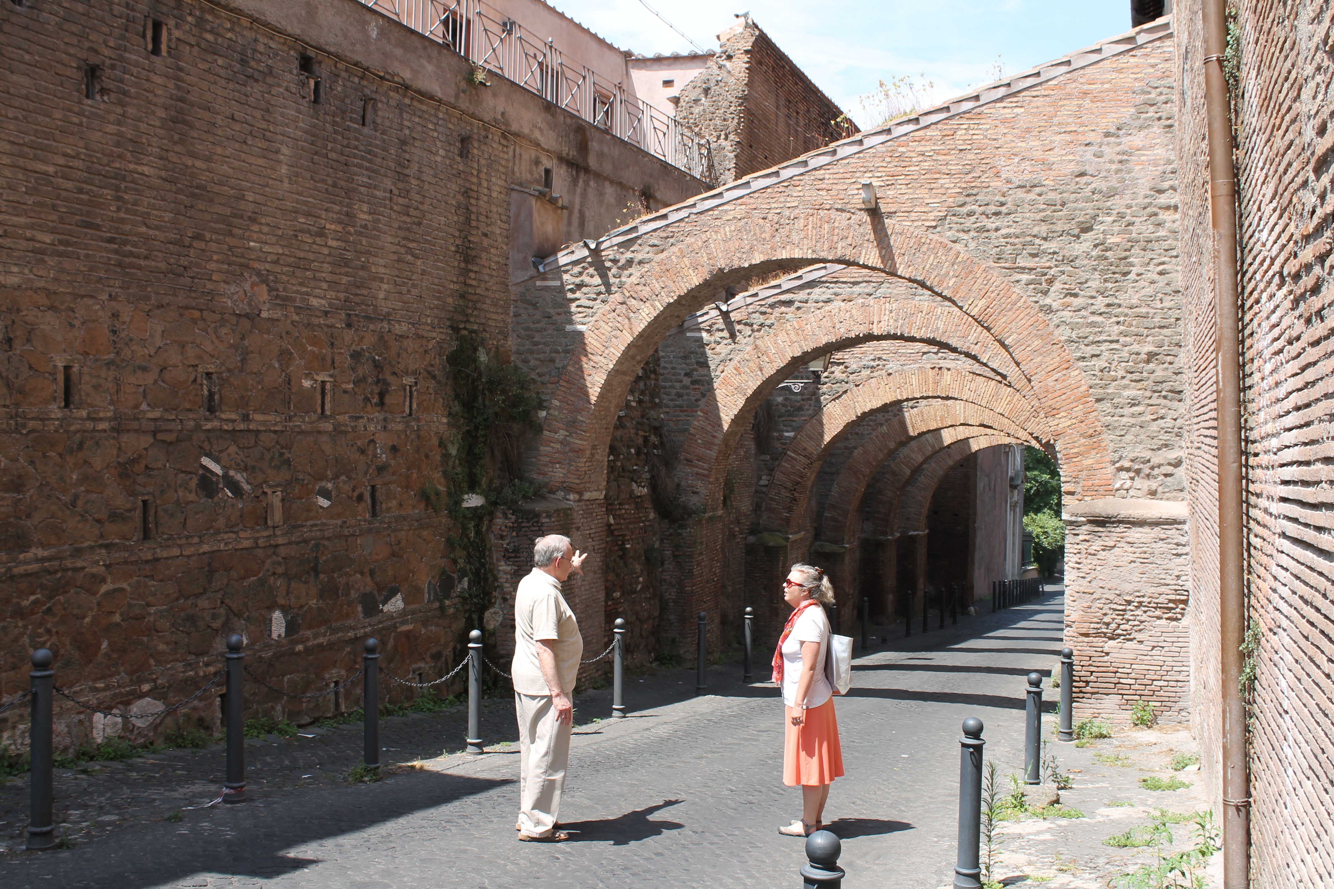 Breakfast in Roma (cappucino and pastry) is eaten standing at a counter. On our first morning, the busy waiter behind the counter confuses us at first because he is holding our receipt (one orders and pays on the opposite side of the shop) but keeps demanding a “ticket!” As Sarah questions him (“THAT is OUR ticket!) he realizes we are not stupid turista and quickly has Marcello, the barista, make our orders. The waiter speaks no english and begins rapidly firing italian at us, all smiles and apologies. No hard feelings, we guess!
